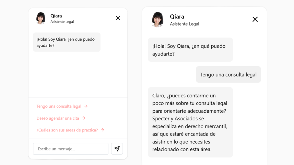 Qiara handles inquiries from your website, answers initial questions, and guides visitors automatically.